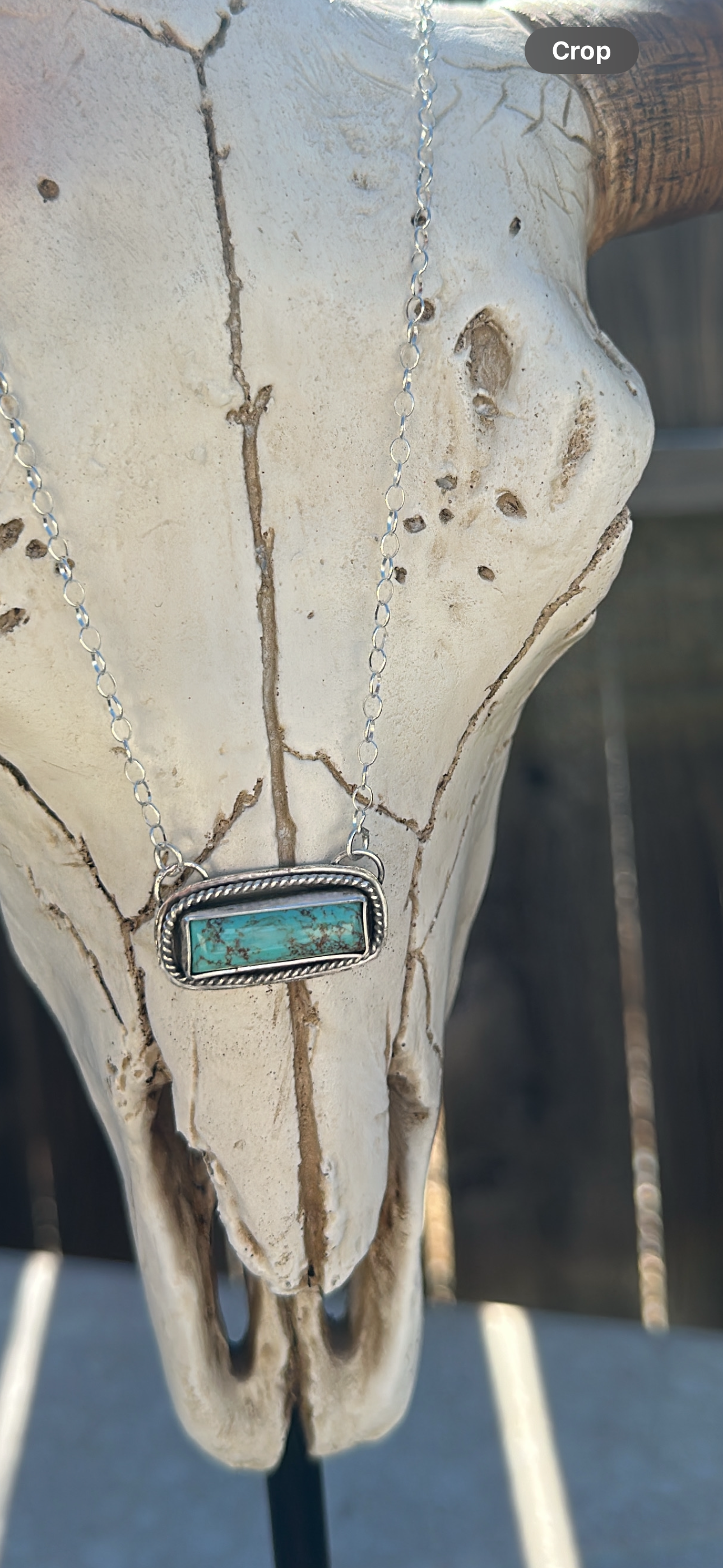 Kingman Turquoise bar with 16 inch sterling silver chain